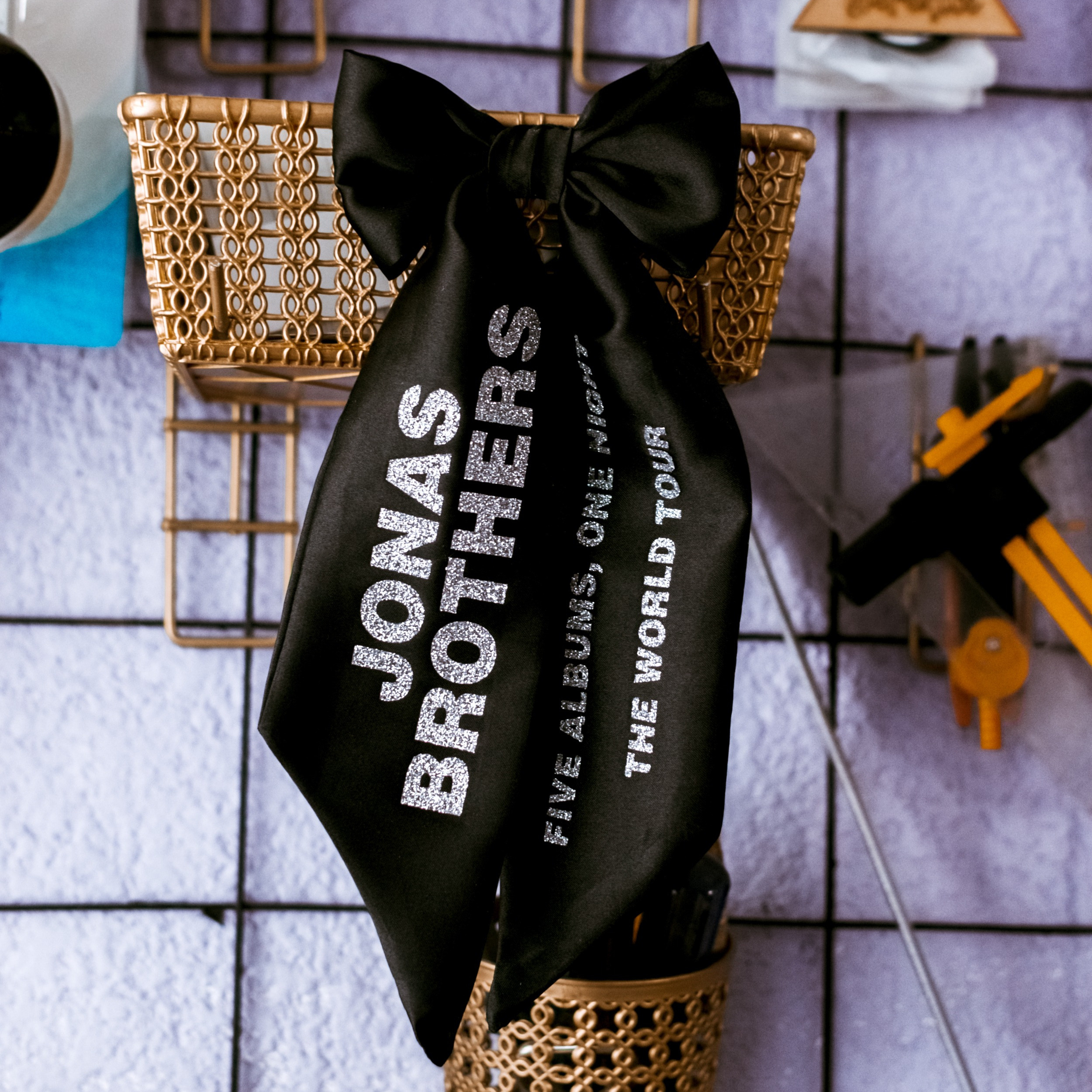Moño para el pelo, hecho a mano, personalizados con vinil textil.