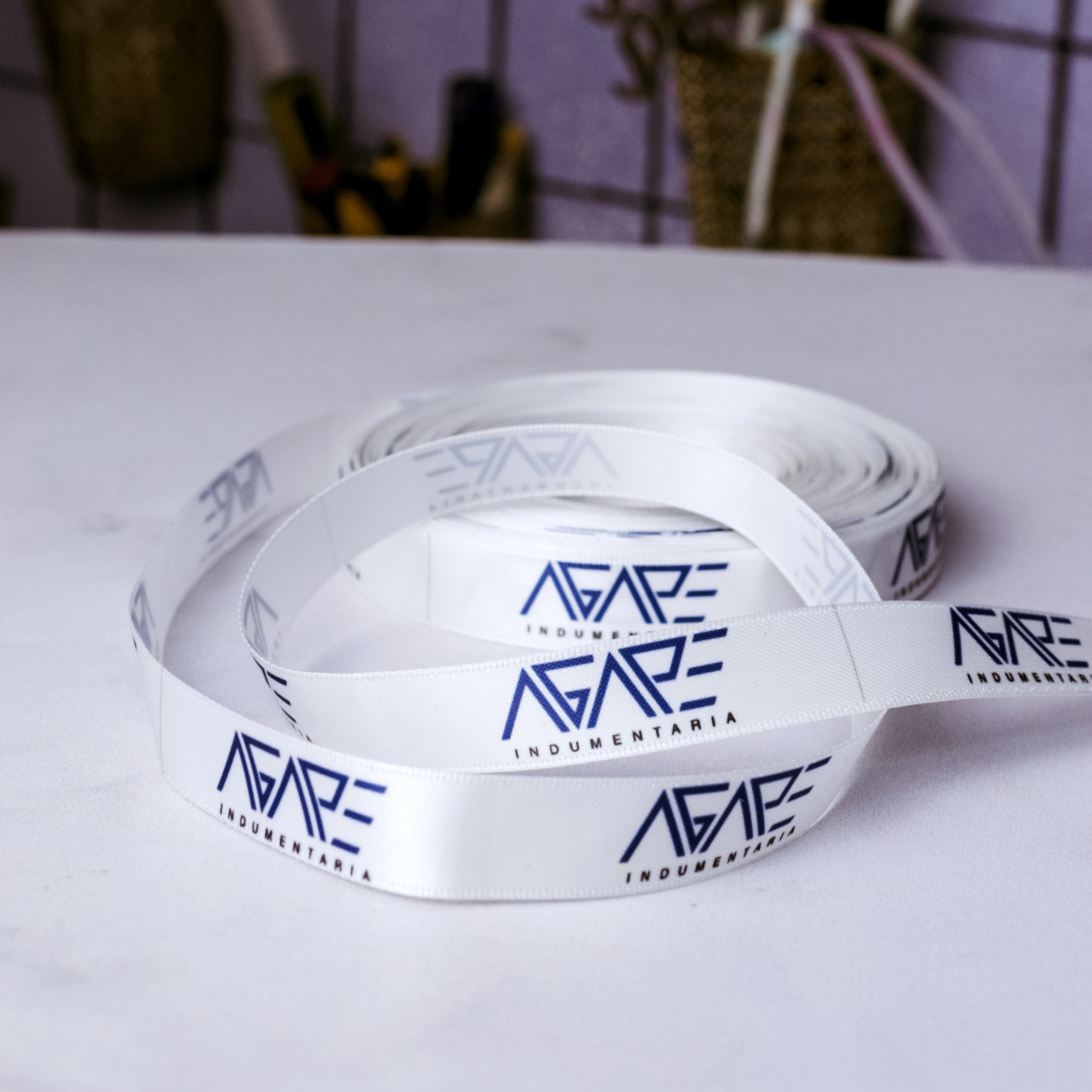 Listón satinado de 1.6 cm de ancho, aprox en un metro entrán 14 etiquetas de 7 cm de largo.