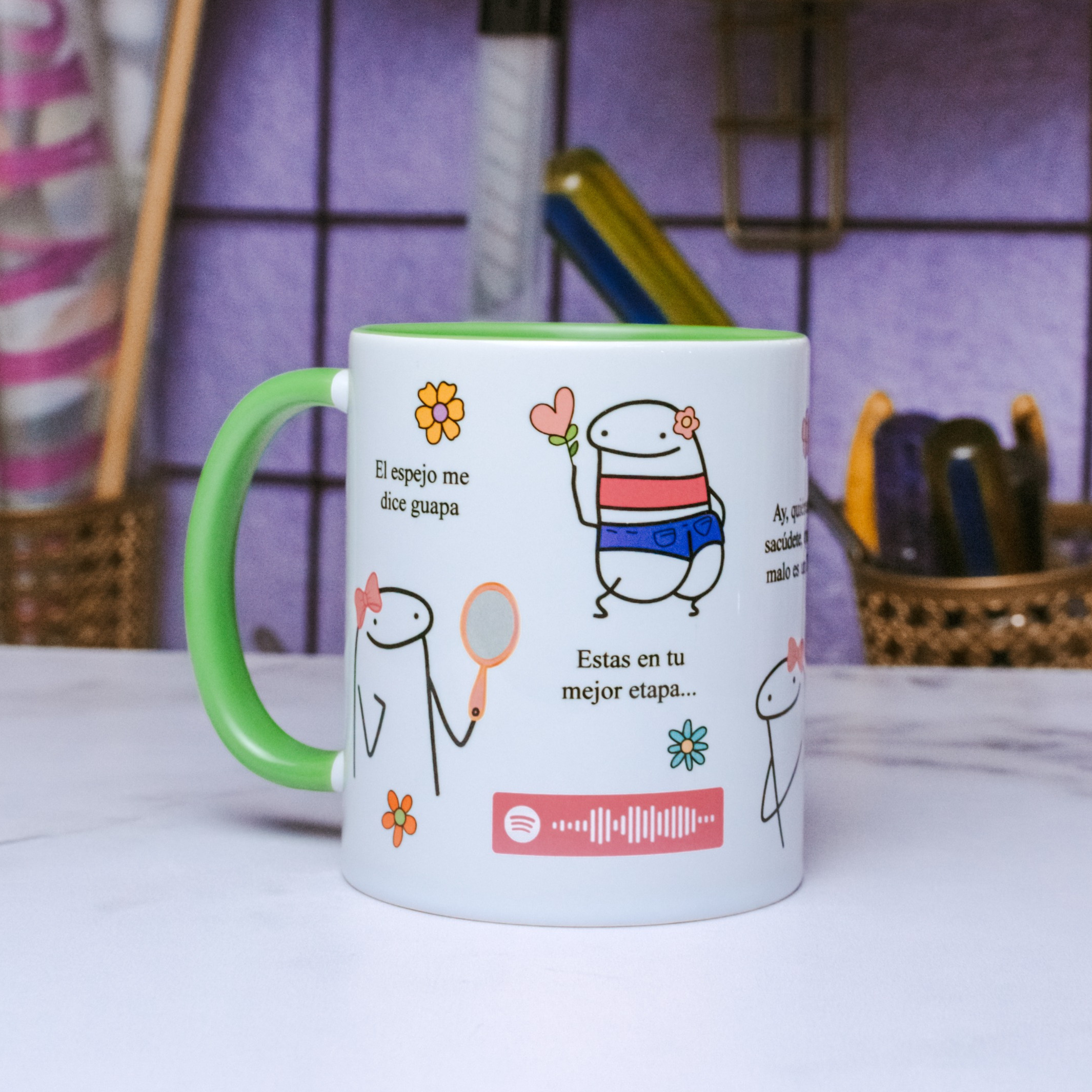 Taza blanca con interior y asa de color de cerámica de 11 oz.
